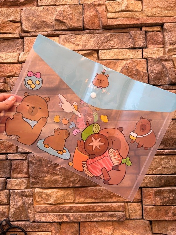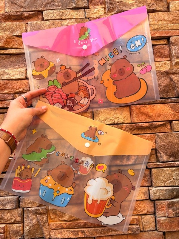 Sobres platicos tamaño a4. FANTASÍA CAPIBARA TRANSPARENTE
